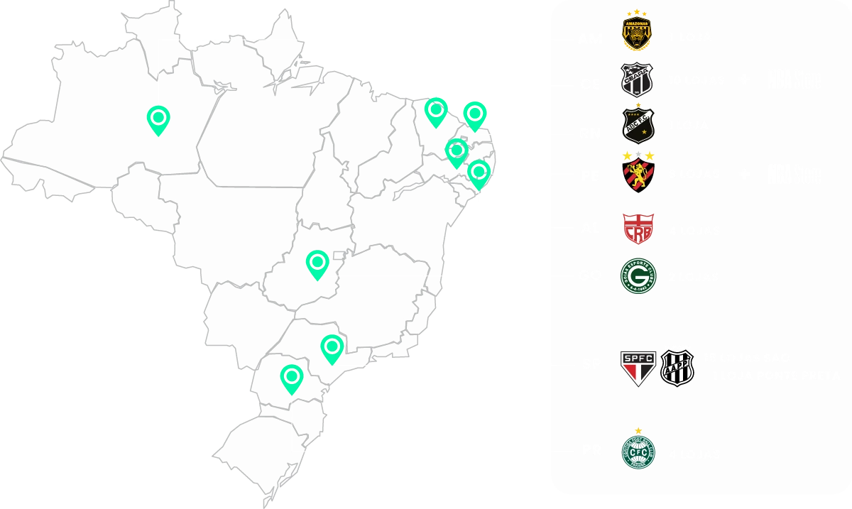 Gerenciamos lojas físicas, franquias e e-commerce para maximizar a experiência e receita dos clubes.